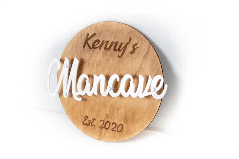 - “Mancave” word cut from Acrylic (Plexiglass)